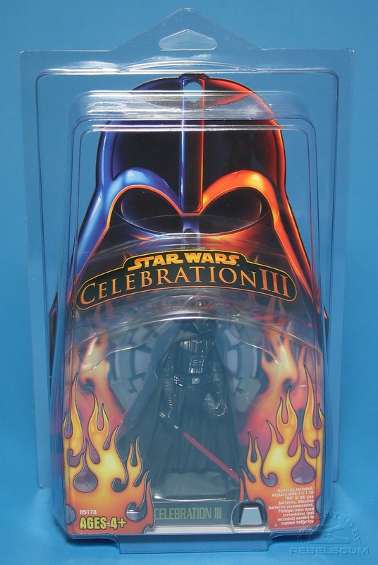 THE TALKING VADER ~ The hot item of the weekend was, of course, the CIII exclusive Darth Vader figure featuring the voice of James Earl Jones himself saying “Welcome to Star Wars Celebration III” and a few other quips. These were new recordings made for this figure, which was very cool. Another neat thing about the figure was that the battery case was accessible without removing the plastic packaging off of the figure. So you could keep it talking without having to fully remove it from the package! Click here to listen to the audio from the figure.