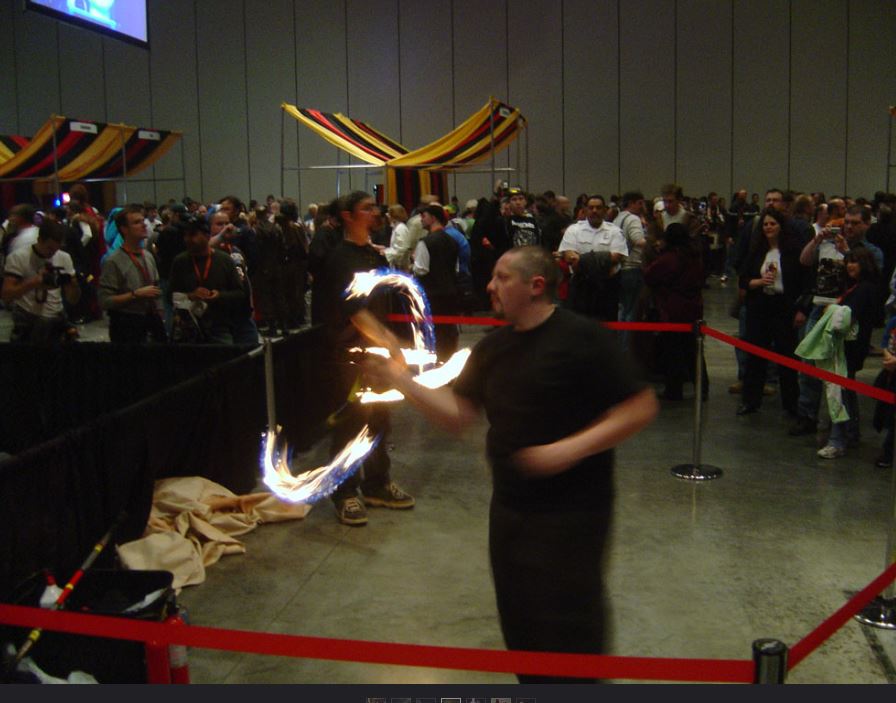 THE CELEBRATION AT CELEBRATION ~ This after-hours event was held on Saturday evening within the convention center. It had many crazy features, including fire jugglers (photo evidence below), people making paper mâché Kaminoan heads (I had no idea what they were doing when I found the picture but Jason Gibner of Blast Points told me that was, in fact, the situation), big inflatable gladiator battles, and a whole bunch of other madness. Stilt walkers, air brush tattoos, live music, and more. The party even had it’s own merch! Dave aka Nerdmatters told me, “They had multiple designs you could choose from and they did a heat transfer right there on the shirt you wanted.” Dave’s shirt is pictured below!