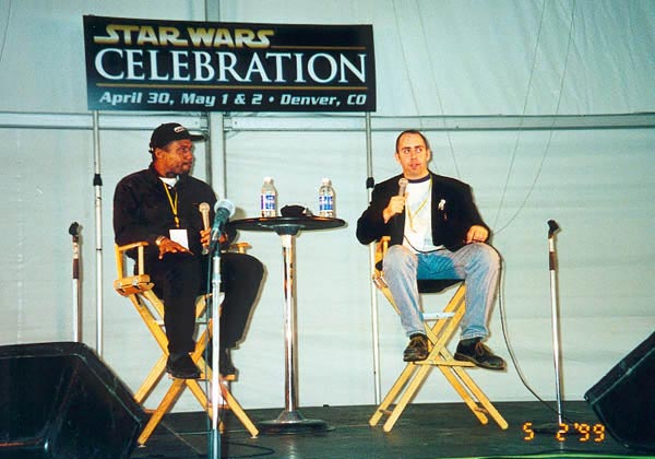 You can see a brief clip of the above meeting (yes, actual footage!!) in a video posted by Scott on YouTube (“My Star Wars Celebration II Video Scrapbook (Scott Chernoff 2002)“) featuring some of his CII adventures, including saying hi to a bunch of the Star Wars celebrities on the autograph line. And all those camera flashes during the Lando/Lobot reunion means more pictures are out there!